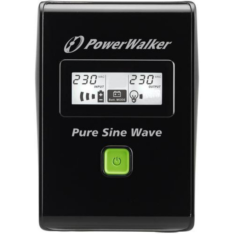 <b>PowerWalker VI 600 SW FR</b><br><br>With its digitalized PWM-based controller PowerWalker VI SW provides a pure sine wave output especially best suitable to protect modern PC like mini servers, gaming PC, point of sale (POS) systems and other electronic devices with APFC power supplies. Not only limited to APFC power supplies and equipped with a voltage stabilizer, this UPS will continue providing clean and stable power to connected equipment and is perfect for any home or small and medium office application.PowerWalker VI 600 SW FR. UPS topology: Line-Interactive, Output power capacity: 0.6 kVA, Output power: 360 W. AC outlet types: Type E, AC outlets quantity: 2 AC outlet(s). Battery capacity: 7 Ah, Battery voltage: 12 V, Typical backup time at half load: 5 min. Form factor: Mini Tower, Product colour: Black, Green, Display type: LCD. Cables included: Input power cable, USB cable