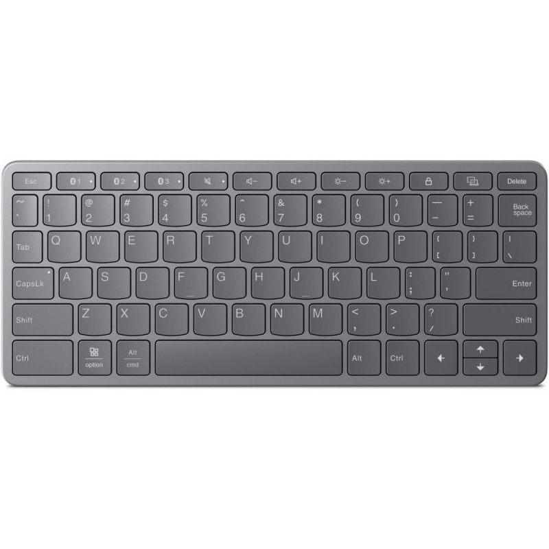 Lenovo mitme seadmega juhtmevaba klaviatuur. Brändi ühilduvus: Lenovo, toote värvus: hall, värvi nimetus: Luna Grey. Ülekandetehnoloogia: juhtmevaba, seadme liides: USB Type-C. Toiteallikas: aku, aku-/patarei pinge: 5 V, aku-/patarei mahtuvus: 200 mAh. Muude operatsioonisüsteemide tugi: Android, toetatud mobiilsed operatsioonisüsteemid: iPadOS. Laius: 255,8 mm, sügavus: 105,9 mm, kõrgus: 14,6 mm.