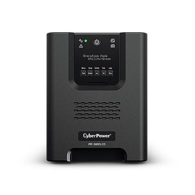 The Professional Tower Series UPS provides advanced level of power protection to servers, telecom equipments, VOIP, internet working hardware and other mission-critical applications. Featuring Pure Sinewave output and Automatic Voltage Regulation (AVR) stabilizes the AC signal and maintains a safe voltage, it allows the UPS to maintain safe power levels for the connected equipment without resorting to battery power. Its detachable, remote-controllable Multifunction LCD Readout can be mounted on the wall or in the control center nearby to provide highest convenience and flexibility under different management scenarios.<br><br>The optional SNMP/HTTP Remote Management Capability enables remote management and control of the system through standard web browser. Together with the included PowerPanel® Business Edition management software, it could provide corporate servers and critical workstations comprehensive network power management including unattended-shutdown, event logging, reporting, and notifications.CyberPower PR1500ELCD. UPS topology: Line-Interactive, Output power capacity: 1.5 kVA, Output power: 1350 W. AC outlet types: C13 coupler, Power plug: C14 coupler, AC outlets quantity: 8 AC outlet(s). Battery technology: Sealed Lead Acid (VRLA), Typical backup time at full load: 5 min, Typical backup time at half load: 17 min. Form factor: Tower, Product colour: Black, Housing material: Metal. Certification: CE, EAC, RCM, RoHS
