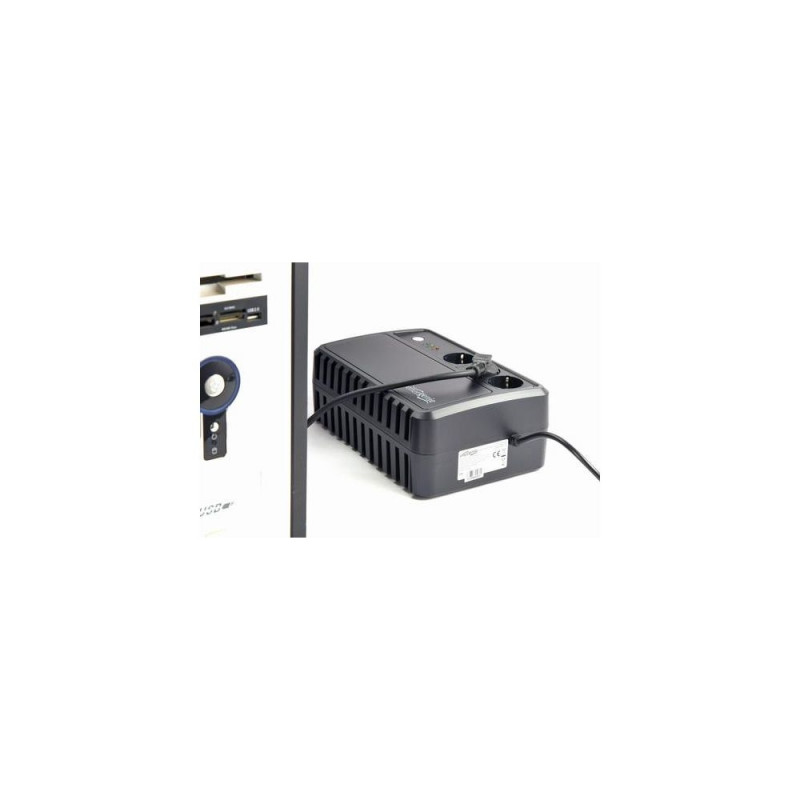 Uninterruptable 600 VA power supply with modified sine wave output<br>Automatic AC voltage regulation (AVR)<br>Intelligent surge-, overload- and short-circuit protection on all 3 sockets<br>UPS battery backup on 3 sockets<br>Audible and visual alarms<br>LED status indication<br>Intelligent battery management with overcharge and over-discharge protection<br>Wall mountableGembird EG-UPS-3SDT600-01. UPS topology: Line-Interactive, Output power capacity: 0.6 kVA, Output power: 360 W. AC outlet types: Type F, Power plug: Type F, AC outlets quantity: 3 AC outlet(s). Battery technology: Sealed Lead Acid (VRLA), Battery capacity: 7 Ah, Battery voltage: 12 V. Form factor: Desktop, Product colour: Black, Cable length: 1.2 m. Compliance certificates: CE, RoHS
