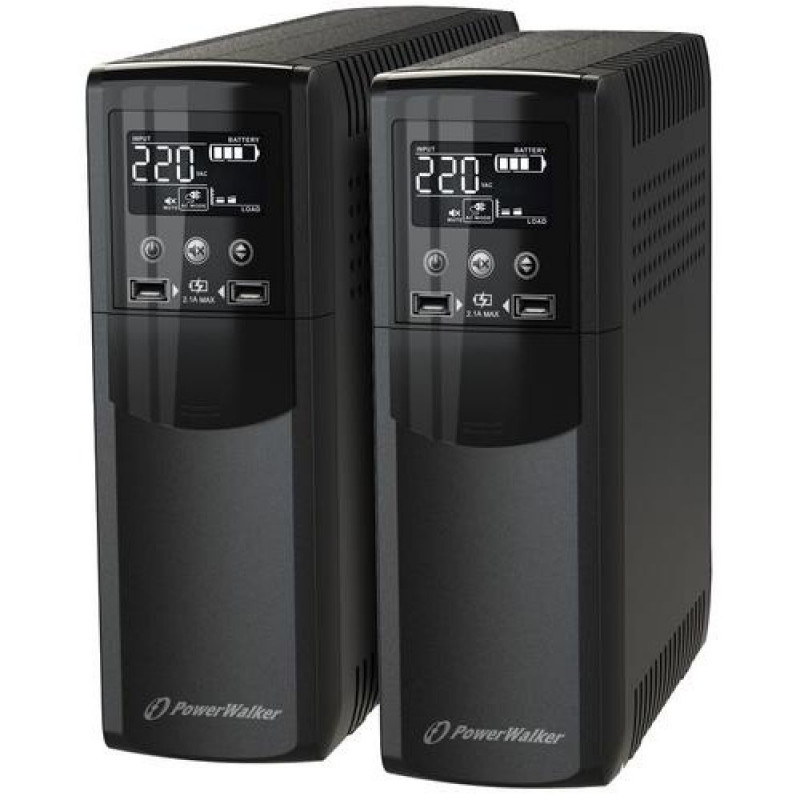 PowerWalker VI CSW is a line-interactive UPS series with state of the art technology and design. The integrated AVR function and pure sinewave output ensures clean and stable output during power outages or voltage fluctuations. The UPS functions can be monitored and controlled via USB communication, either with a software or without (HID).<br><br>The modern and elegant design makes the VI CSW series especially suitable for home and office use. Applications include (but are not limited to) gaming and entertainment systems, office workstations, NAS etc.<br><br>Two USB charging ports (2.1A) in the front offers additional functionality and convenience. Furthermore, the design allows easy access to the battery compartment via the front panel for easy battery replacement.PowerWalker VI 1500 CSW. UPS topology: Line-Interactive, Output power capacity: 1.5 kVA, Output power: 900 W. AC outlet types: Type F, AC outlets quantity: 4 AC outlet(s), Serial interface type: RJ-45. Battery capacity: 9 Ah, Battery voltage: 12 V, Battery recharge time: 8 h. Form factor: Tower, Product colour: Black, Display type: LCD. Cables included: USB cable