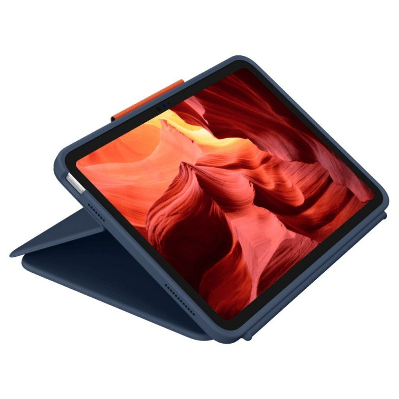 Logitech Rugged Combo 4. Klaviatuuri paigutus: QWERTY, klaviatuuri keel: UK inglise, sisendseade: puuteplaat. Brändi ühilduvus: Apple, ühilduvus: iPad (10. põlvkond & A16), toote värvus: sinine. Ülekandetehnoloogia: dokkimine, seadme liides: Smart Connector. Toiteallikas: dokk. Laius: 256 mm, sügavus: 195 mm, kõrgus: 20 mm.