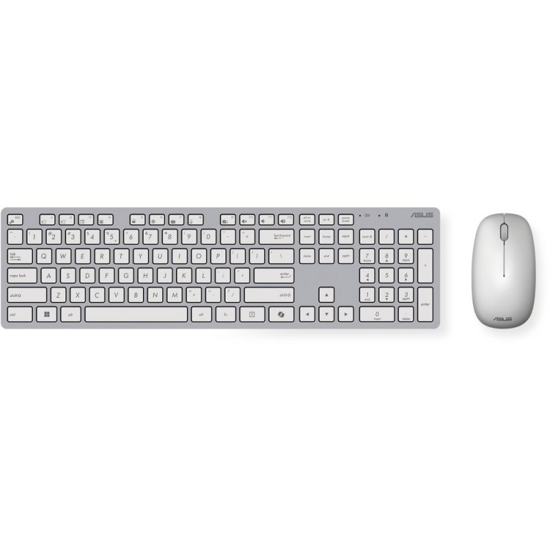 ASUS W5000. Klaviatuuri vorming: Täissuurus (100%), Ülekandetehnoloogia: Juhtmevaba, Seadme liides: RF-juhtmevaba, Klaviatuuri lüliti: Optiline lüliti, Soovitatav kasutus: Universaalne. Toote värvus: Valge. Hiir kaasas