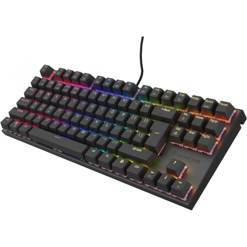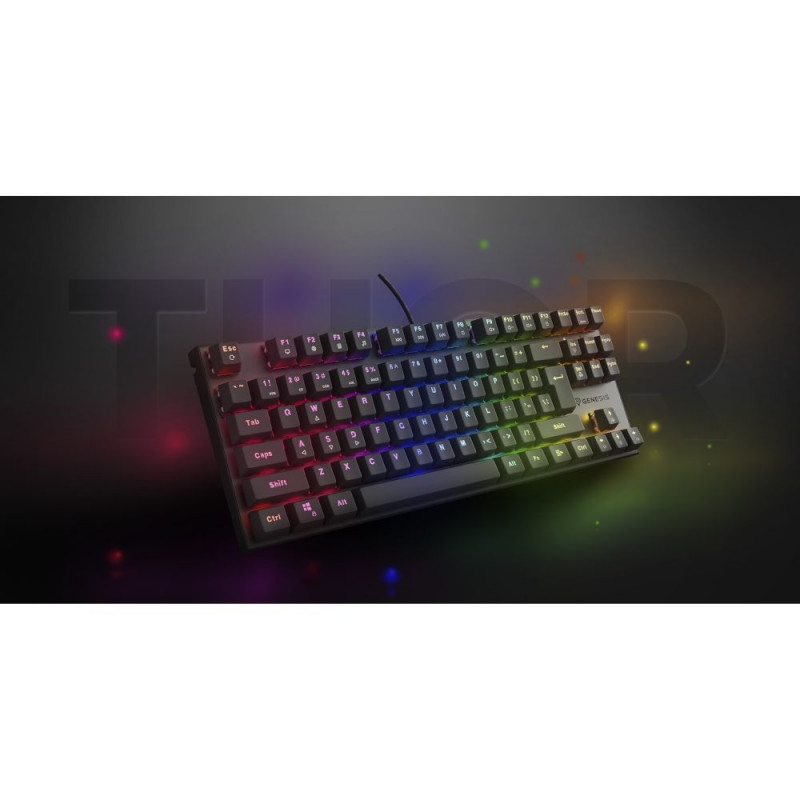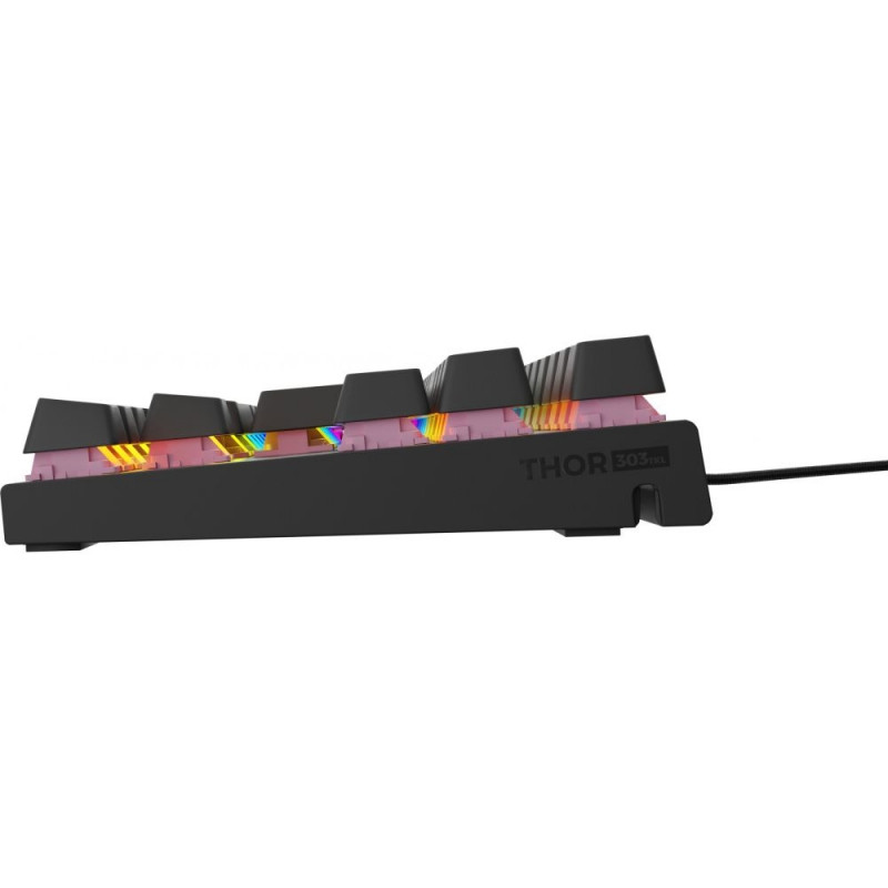 GENESIS Thor 303 TKL. Klaviatuuri vormifaktor: Tenkeyless (80–87%). Klaviatuuri stiil: Sirge. Ülekandetehnoloogia: Juhtmega, seadme liides: USB, klaviatuuri lüliti: Mehaaniline lüliti, klaviatuuri paigutus: QWERTY, klahvide arv: 87. Taustvalgustuse tüüp: RGB-LED. Kaabli pikkus: 1,8 m. Soovitatav kasutus: Mängimine. Toote värv: Must.