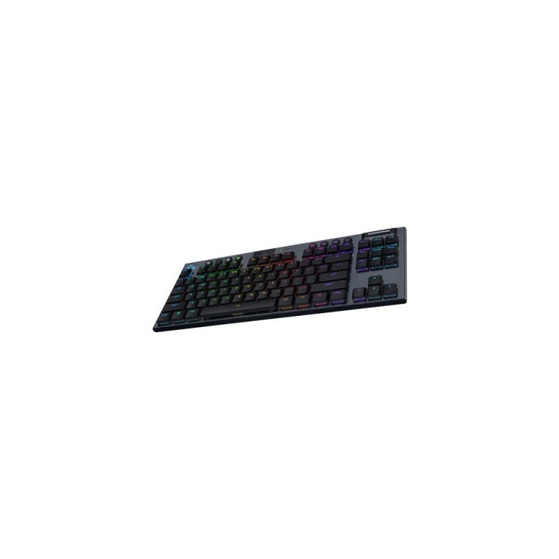 <b>LOW PROFILE. ELEVATED.</b><br>Logitech G915 X LIGHTSPEED TKL delivers speed, accuracy, and customization with a sleek, tenkeyless design. This wireless gaming keyboard features tri-mode connectivity, KEYCONTROL, an elevated typing experience, and LIGHTSYNC RGB.<br><br><b>EXPERIENCE MORE</b><br>Experience the trusted performance of the original with the superior potential of next-gen technology. The G915 X LIGHTSPEED TKL delivers breakthrough design and engineering to take your play beyond dimension.<br><br><b>ELEVATED SPEED</b><br>Make the most of every moment in the game with a keyboard built for extreme speed. Low-profile GL mechanical switches feature a 1.3 mm actuation point for increased APM.<br><br><b>QUICK ACCESS CONTROL</b><br>Unleash your power with a fully-personalized command center. KEYCONTROL allows up to 15 functions per key for endless customization. Easily execute complex sequences with soft touch media keys and a cast iron roller bar.<br><br><b>PLAY AT LIGHTSPEED</b><br>Play your way with tri-mode connectivity. Choose from the best-in-class 2.4 GHz LIGHTSPEED wireless, Bluetooth, or wired data mode and change with the touch of a button.<br><br><b>FORMATIVE FUNCTION</b><br>Tenkeyless design and only 23 mm high, G915 X LIGHTSPEED TKL defies the expectations of structure design. Meticulous engineering provides durability and an ultra-thin build for maximized comfort and a sleek aesthetic.<br><br><b>NEXT-GEN TYPING EXPERIENCE</b><br>Double-shot PBT keycaps and premium brushed aluminum alloy top plate provide smoother feel, faster actuation, and precise typing with zero compromises to durability.<br><br><b>COLORFUL IMMERSION</b><br>LIGHTSYNC RGB offers ~16.8 M colors for custom illumination, personalized themes, and unified gear through G HUB. Unleash your creativity for a fully immersive gaming experience.Logitech G G915 X Lightspeed. Keyboard form factor: Tenkeyless (80 - 87%). Keyboard style: Straight. Connectivity technology: Wired & Wireless, Device interface: USB + RF Wireless + Bluetooth, Keyboard key switch: Mechanical, Keyboard layout: QWERTY. Backlight type: LED. Cable length: 1.8 m. Recommended usage: Gaming. Product colour: Black