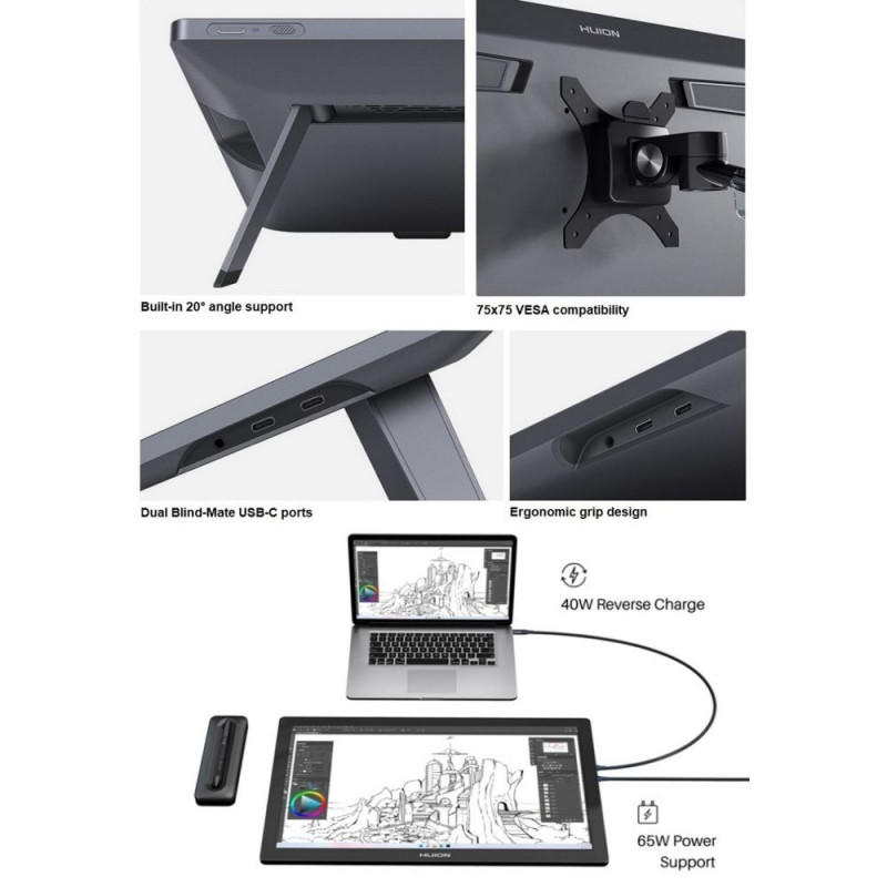 HUION Kamvas Pro 19 on varustatud 18,4-tollise 4K UHD IPS-ekraaniga, mille resolutsioon on 3840 x 2160 pikslit ja 150% sRGB värvigammat. Komplektis on kaks digitaalset pliiatsit, mille surveastmeid on 16 384, ning seade toetab mitmeid operatsioonisüsteeme, sealhulgas Windows, MacOS ja Android.