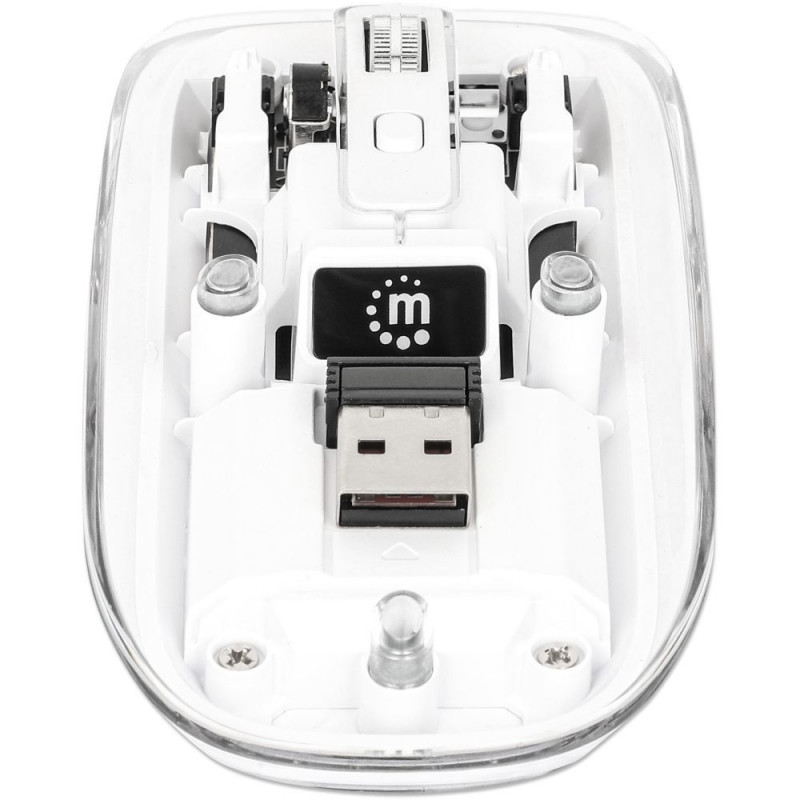 MANHATTAN juhtmevaba USB-A RGB LED arvutihiir, 4 nupuga, valge läbipaistev