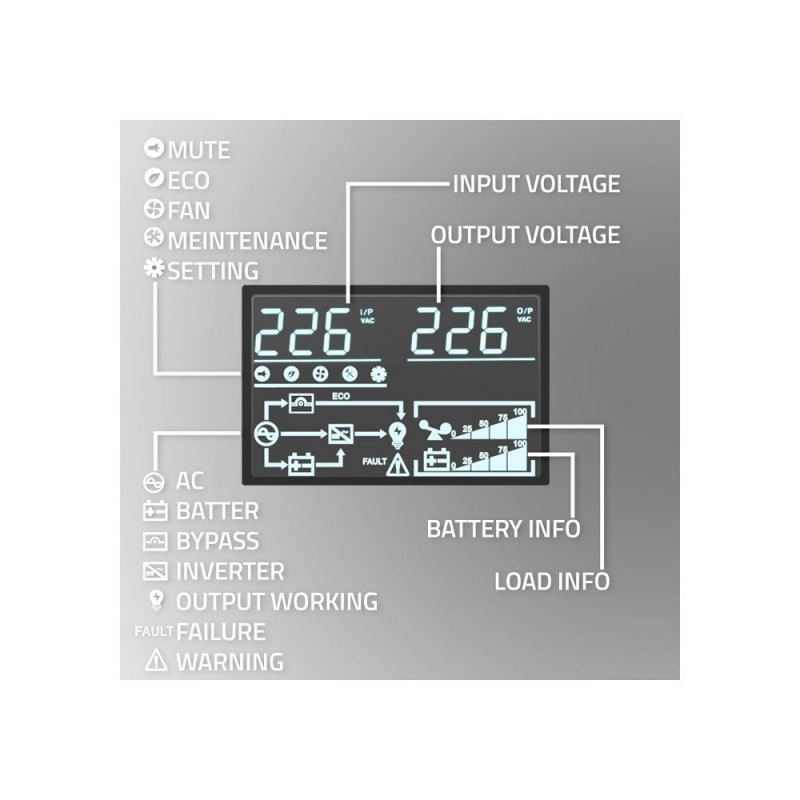 Qoltec katkestuseta toiteallikas RACK jaoks 3kVA 3000W võimsustegur 1.0 LCD EPO USB online