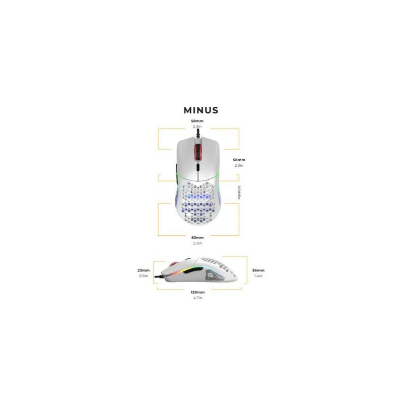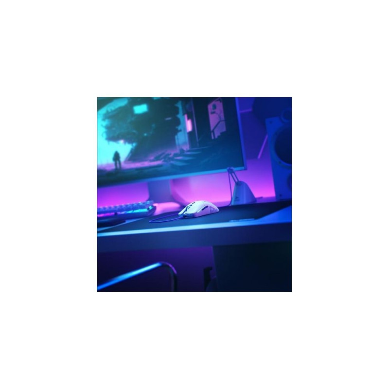 The most comfortable lightweight RGB gaming mouse comes in at just 58g in a superlight honeycomb design. Built to last, with 20M click-rated Omron switches, in an Ambidextrous shape. Its impossibly lightweight frame contains a full suite of ultra-premium features.<br>Glorious Gaming Glorious Model O- Mouse Regular (White). Form factor: Right-hand. Movement detection technology: Optical, Device interface: USB Type-A, Movement resolution: 3200 DPI, Buttons type: Pressed buttons, Buttons quantity: 6, Scroll type: Wheel. Illumination colour: Multi. Power source: Cable. Product colour: White