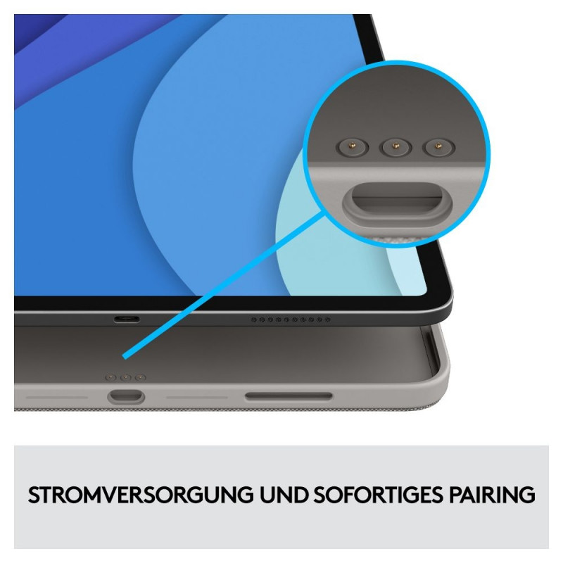Logitech Combo Touch iPad Pro 12,9-tollisele (5. põlvkond). Klaviatuuri paigutus: QWERTY, klaviatuuri keel: US International, sisendseade: puuteplaat. Brändi ühilduvus: Apple, ühilduvus: Combo Touch iPad Pro 13-tollisele (M4) ning iPad Pro 12,9-tollisele (5. ja 6. põlvkond) iPad Pro..., toote värvus: hall. Ülekandetehnoloogia: dokkimine, seadme liides: Smart Connector. Toiteallikas: dokk. Toetatud mobiilsed operatsioonisüsteemid: iPadOS.