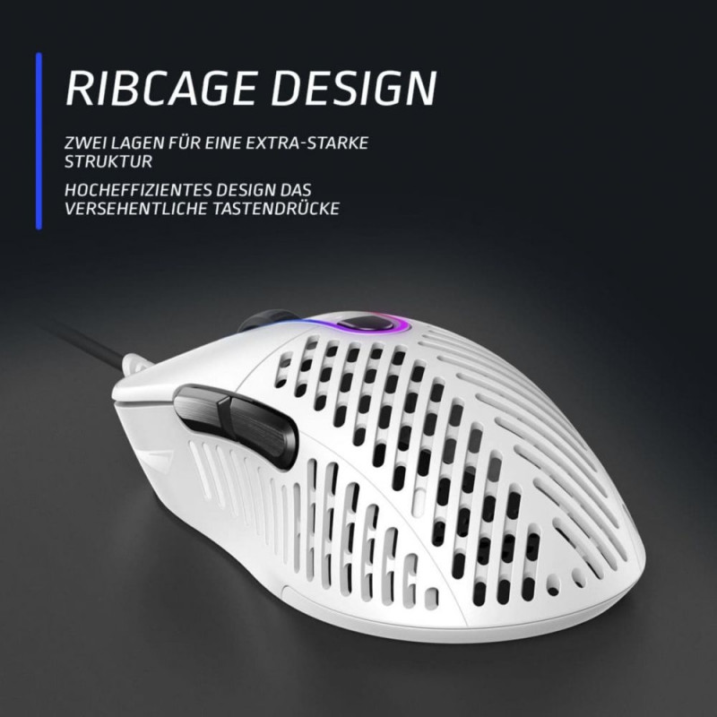 Kerge lahendus võistlusmänguritele, kes ootavad ainult kompromissitut jõudlust. Kasutab Pixarti PAW3370 sensorit kuni 19000 DPI-ga ning ainulaadset “rinnaku” disaini, kaaludes vaid 67 g. Võrratu jõudlus ja unikaalne ergonoomiline kuju viivad sind järgmisele tasemele.