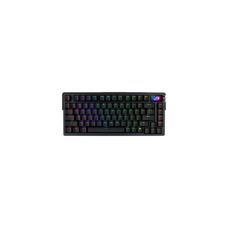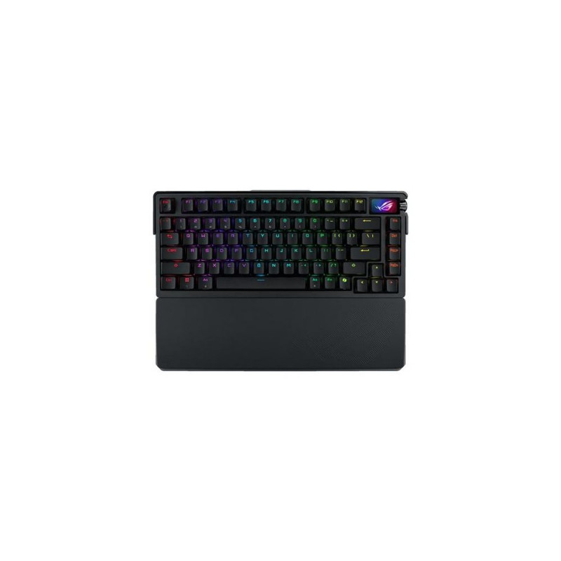 Outstanding quality: Aluminum alloy body with metal frame provides a premium look while delivering best-in-class wireless performance<br>Carbon fiber positioning plate: Provides a crisp typing feel and good acoustics while effectively reducing keystroke vibration<br>Adjustable seal mount: Easily switch between two cushioned typing feels via a quick toggle switch<br>Full-color OLED touchscreen: View system information and customize keyboard settings; built-in three-way rotary knob allows for instant adjustments. Extended silicone wrist rest: Ensures a comfortable typing experience and maintains firmness over time<br>Tri-mode connectivity: Connect via Bluetooth and switch between three devices simultaneously with low-latency 2.4 GHz wireless RF mode or standard wired USB mode<br>Improved typing experience: Pre-oiled ROG NX mechanical switches and noise-dampening foams provide a smoother keystroke and better acoustics.ASUS 90MP03MA-BKNA01. Keyboard form factor: 75%. Keyboard style: Straight. Connectivity technology: Wired & Wireless, Device interface: USB + RF Wireless + Bluetooth, Keyboard key switch: Mem-chanical key switch, Keyboard number of keys: 81. Wrist rest. Recommended usage: Gaming. Product colour: Black
