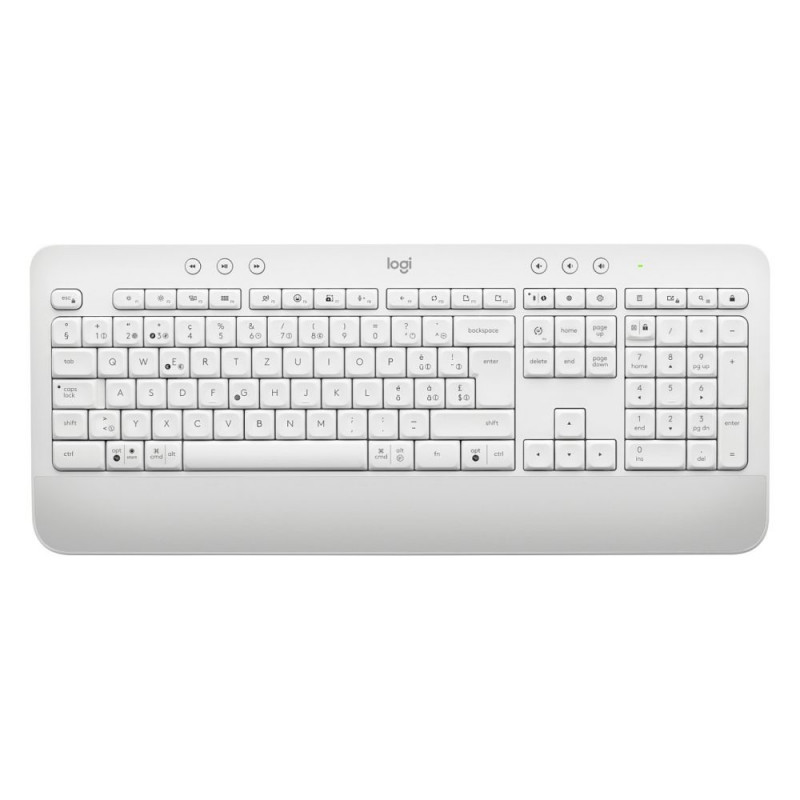 Logitech 920-011021. Klaviatuuri vorming: Täissuurus (100%). Klaviatuuri stiil: Sirge. Ülekandetehnoloogia: Juhtmevaba, seadme liides: Bluetooth, klahvilüliti tüüp: membraanlüliti, klaviatuuri paigutus: QWERTZ, klahvide arv: 118. Randmetugi. Soovitatav kasutus: Kontor. Toote värvus: Valge. Hiir kaasas.