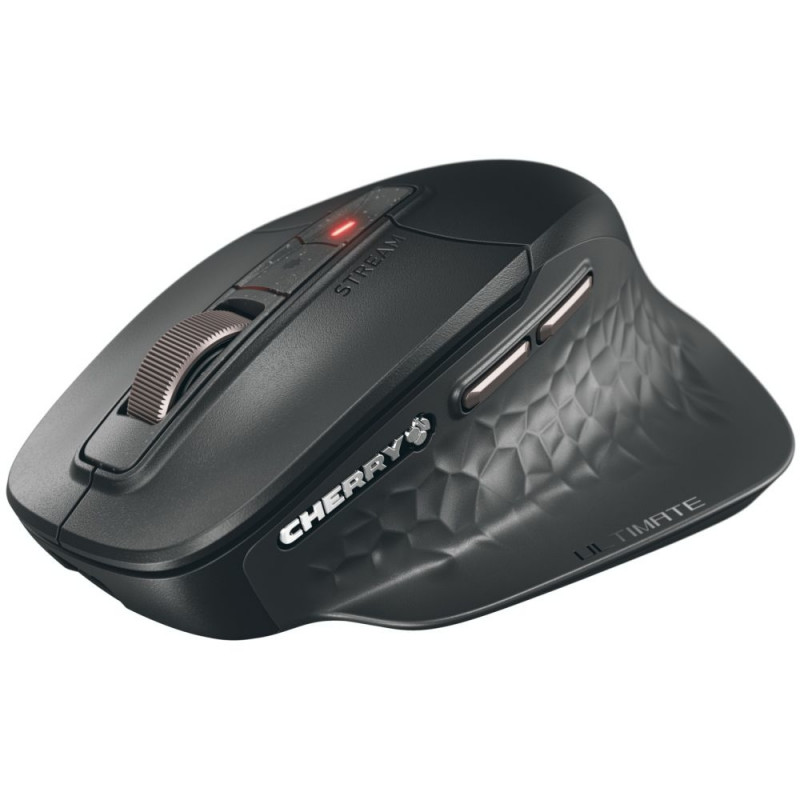 CHERRY Stream Mouse Ultimate. Vormifaktor: paremkäeline. Seadme liides: RF juhtmevaba + Bluetooth + USB Type-C, liikumise lahutusvõime: 4000 DPI, klahvitüüp: vajutatavad nupud, nuppude arv: 7, kerimise tüüp: ratas. Toiteallikas: patareid / kaabel. Toote värv: must.
