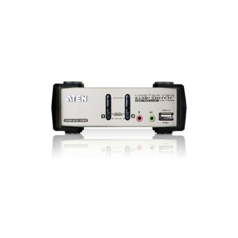 "ATEN 2-pordiline PS/2-USB VGA/Audio KVMP™ lüliti OSD-ga. Klaviatuuri pordi tüüp: USB, PS/2; hiire pordi tüüp: USB, PS/2; video pordi tüüp: VGA. HD-tüüp: QXGA, maksimaalne eraldusvõime: 2048 x 1536 pikslit, videolaiusriba: 60 Hz. Toote värv: must, metallik; korpuse materjal: metall; kaabli pikkus: 1,2 m. Toiteallikas: alalisvool, sisendpinge: 5,3 V, energiatarve (tavakasutusel): 2,5 W. Laius: 140 mm, sügavus: 88 mm, kõrgus: 55,5 mm."