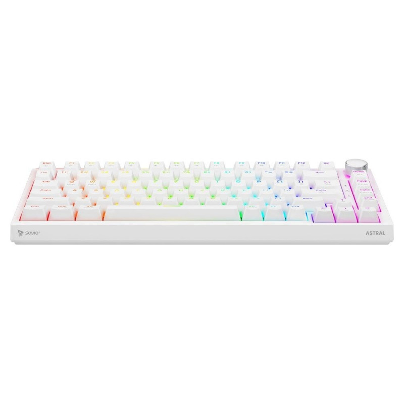 Savio ASTRAL WHITE JADE klaviatuur on kümnevõtmeta (tenkeyless) mänguriklaviatuur, millel on RGB LED-taustvalgustus ja USB Type-C ühendus. Klaviatuuril on 82 klahvi, multimeediaklahvid ning see ühildub Windowsi, Maci ja Linuxi operatsioonisüsteemidega.