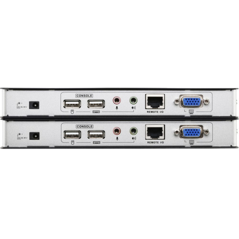 "ATEN CE750A. Tüüp: Saatja ja vastuvõtja, Ülekandetehnoloogia: Kaabliga, Maksimaalne ülekandekaugus: 200 m. Saatja lokaalne videoühenduse tüüp: VGA, Saatja lokaalne klaviatuuri/hiire ühenduse tüüp: USB. Vastuvõtja lokaalne videoühenduse tüüp: VGA, Vastuvõtja lokaalne klaviatuuri/hiire ühenduse tüüp: USB. Saatja laius: 8,63 cm, saatja sügavus: 20,2 cm, saatja kõrgus: 2,5 cm."