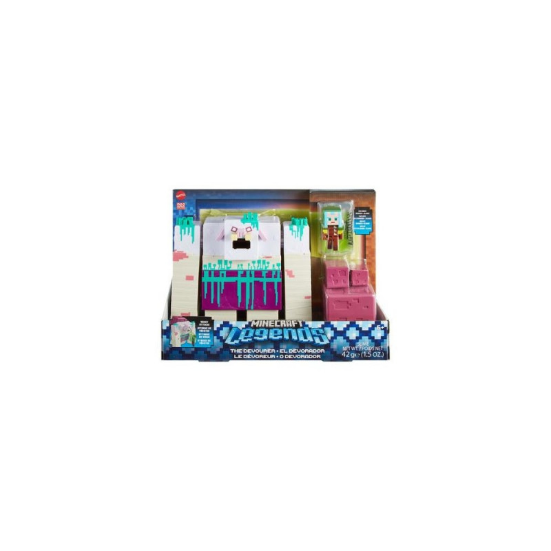 Capture the excitement of Minecraft Legends and devour the Overworld with this huge action figure of the Devourer with vomit attack! This set includes the daunting Devourer figure spewing slime as well as the 3.25 in-scale heroic Ranger figure, ready to fight and defend! Attach the mushroom spore to the Devourer, load in the slime, and get ready to puke! Next, squeeze the mushroom spore to vomit all over the included Ranger. These figures are authentic to their Minecraft Legends video-game counterparts -- plus, fans will enjoy the large size of this super-bad villain! Colours and decorations may vary.Minecraft LEGENDS DEVOURER Figure. Recommended age (min): 6 yr(s), Product colour: Multicolour, Material: Plastic