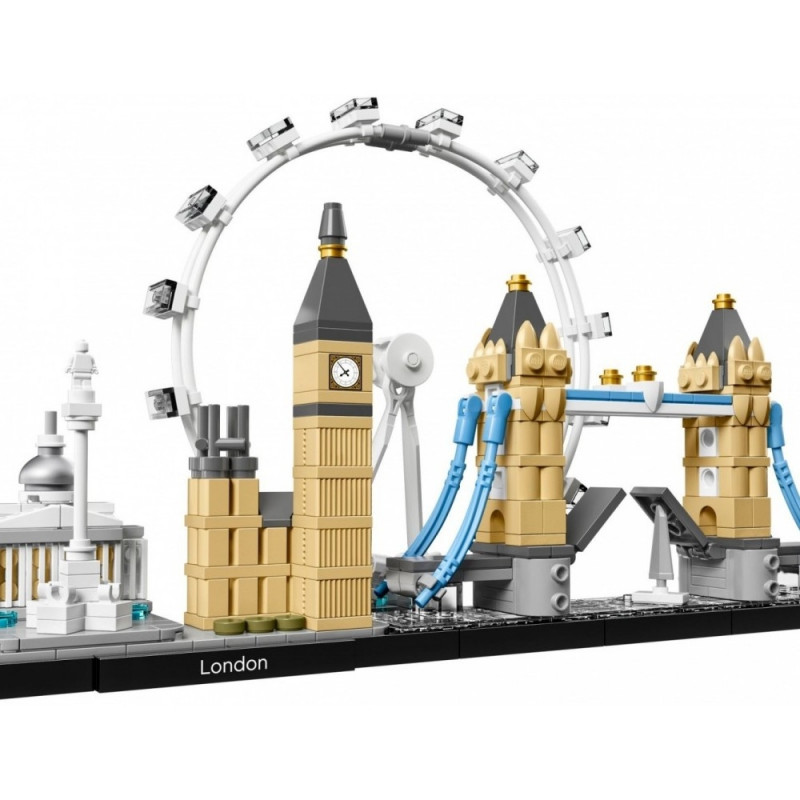 LEGO Architecture Skyline kollektsioonis leiate mudeleid, mis näevad suurepärased välja nii kodus kui ka kontoris. Need on mõeldud kõigile, keda huvitab reisimine, arhitektuur kui kultuuri, ajaloo ja disaini ilming. Iga komplekti hoonete vastastikused proportsioonid vastavad tegelikkusele ja nende värvid on loodusega sarnased. Komplekti kuuluvad National Gallery, Nelsoni sammastik, London Eye, Big Ben (Elizabethi torn) ja Tower Bridge'i siluetid. Kogu komplekti täiendab dekoratiivne tahvel sõnaga London.