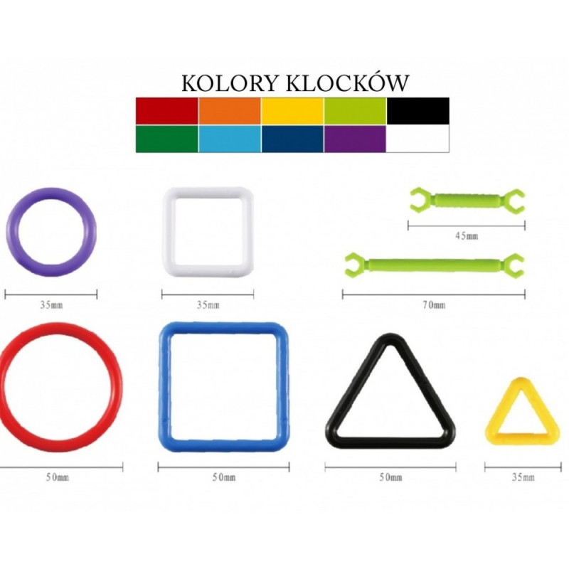 10 värvitoonis erinevad elemendid võimaldavad luua vahvaid kujundeid, nagu jalgratas, auto, lamamistool või vihmavari.