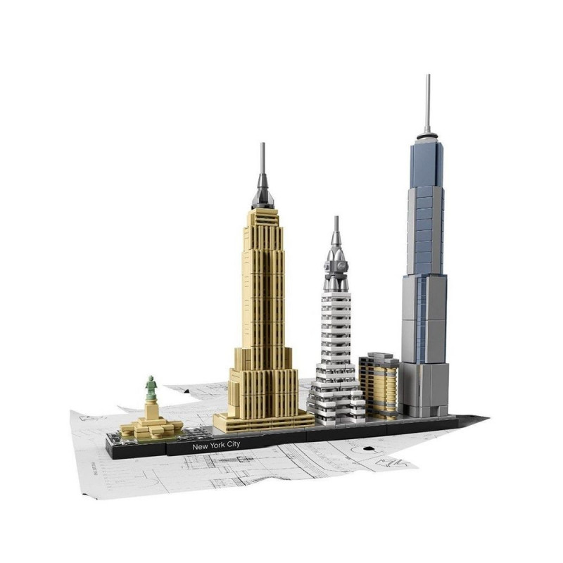 LEGO Arhitektuur: New York komplektis on kujutatud viit tuntud hoonet, mis moodustavad linna silueti: Vabadussammas, Empire State Building, Chrysler Building, Flatiron Building ja One World Trade Center. Iga hoone on kujundatud vastavalt originaalile, kasutades LEGO klotside nutikaid lahendusi, et tabada nende unikaalset arhitektuuri ja proportsioone. Komplekti kuulub ka dekoratiivne alusplaat nimega "New York", mis annab mudelile viimistletud ja esindusliku välimuse.