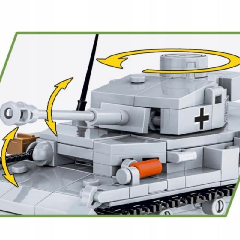 Tellistest Panzer IV on detailitäpsusega taastatud mõõtkavas 1:48 ning sellel on liikuvad osad, nagu torn ja kahuritoru, samuti pöörlevad rattad ja roomikud. 390 elemendist koosneva komplekti eeliseks on selle tugev konstruktsioon, mis peegeldab ustavalt ajaloolise prototüübi originaalkuju. Meie miniatuurne tank on kaetud kvaliteetsete trükistega, mis ei kulu maha. Panzer IV täiendab meie 1:48 mõõtkavas miniatuursete tankide sarja, mis sobib ideaalselt iga sõjaajaloo ja tehnoloogia huvilise kollektsiooni, olles ehitatud Poola COBI ehitusklotsidest.