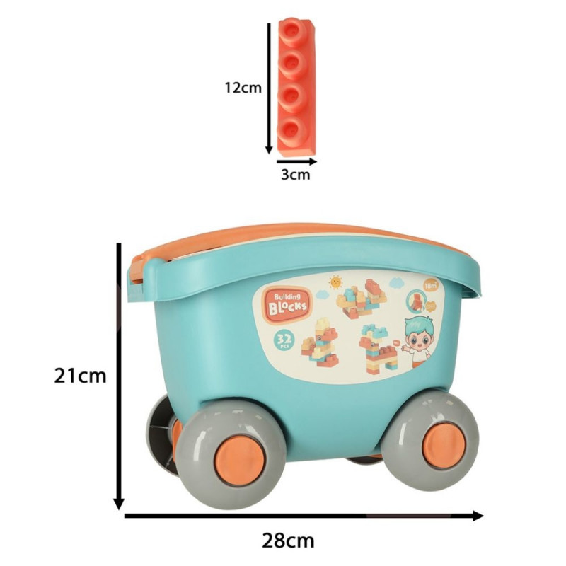 Suured plastikplokid praktilises ratastel konteineris. Iga klots on pehme ja ilusas pastelses värvitoonis. Komplektiga mängimine harjutab laste käteoskust ja kujutlusvõimet. Klotside arv: 32. Näidisplokk: 12 x 3,2 x 3 cm.Osta kohe, viimased eksemplarid laos!