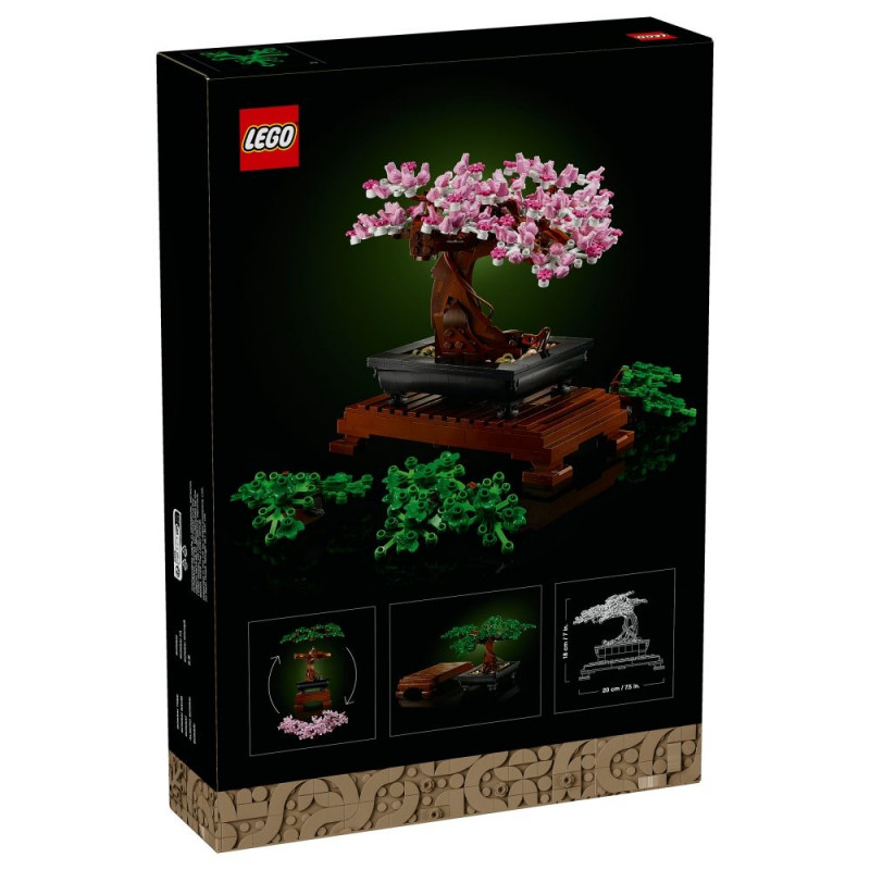 LEGO Botanicals Bonsai puu. Tootetüüp: ehituskomplekt, soovitatav vanus (alates): 18 aastat, materjal: plast, detailide arv: 878 tükki. Pakendi kaal: 764 g