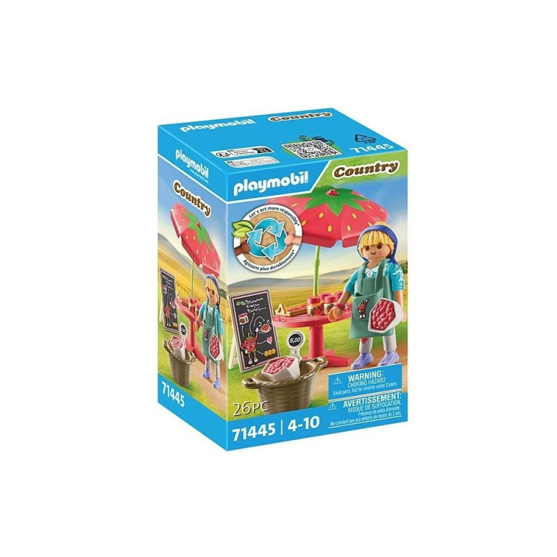 Naudi PLAYMOBIL Country Koduse Maasikamoosi Leti võluvat maailma, kus rollimäng on imelihtne! See marjamaitseline komplekt on mõeldud lastele alates 4. eluaastast ja on valmistatud üle 80% ulatuses jätkusuutlikust materjalist, pidades silmas planeedi heaolu. Külasta maasikaletti ja maitse värskelt korjatud maasikate magusust. Ära jäta vahele maitsvat maasikakooki ja hapukat maasikamoosi. Komplektis on üks PLAYMOBIL figuur ja käepidemega kott, mis on täidetud värskete maasika lisanditega, et saaksid nautida viljakat mänguaega!