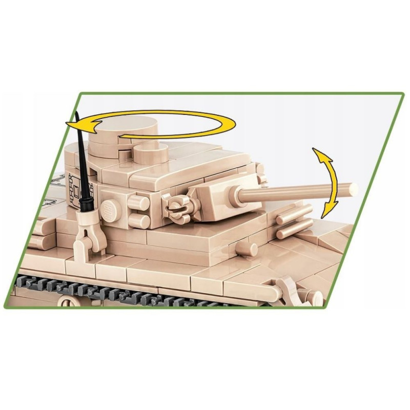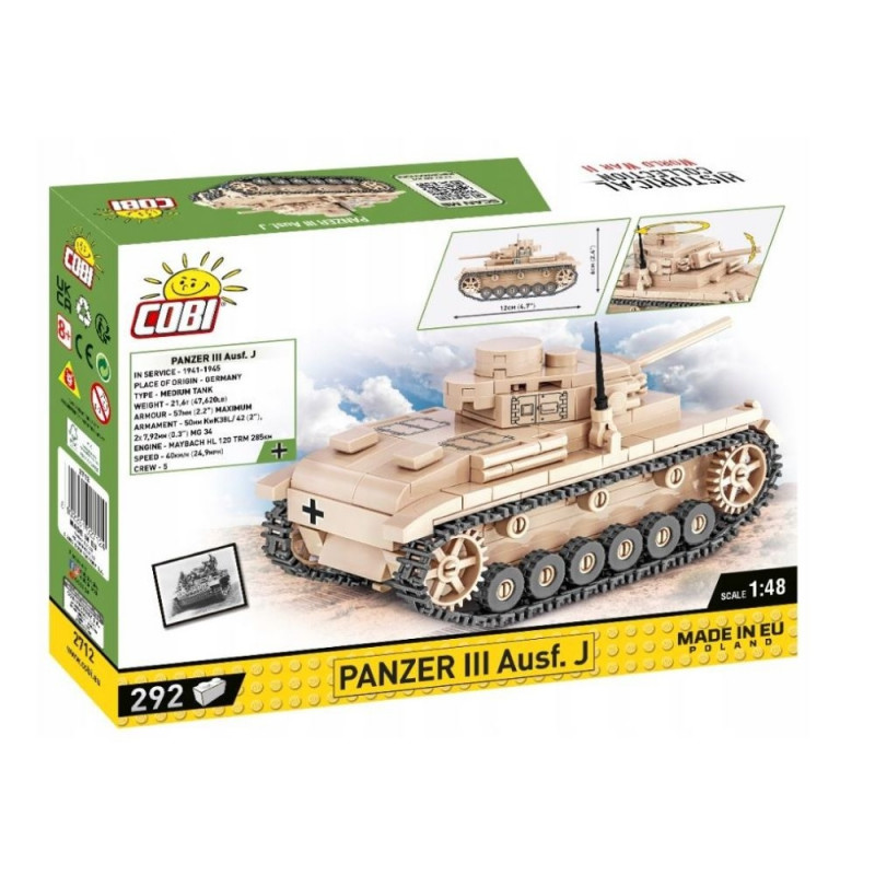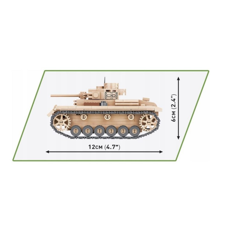 Klotsidest Panzer III on loodud detailitäpselt modelleerimisskaalas 1:48. Sellel on liikuvad osad, nagu torn ja kahuritoru, samuti pöörlevad rattad ja roomikud. 292 elemendist koosneva komplekti eeliseks on tugev konstruktsioon, mis peegeldab ustavalt oma ajaloolise eelkäija originaalkujusid. Meie miniatuurne tank on kaetud kvaliteetsete trükistega, mis ei kulu maha. Panzer III täiendab meie 1:48 skaalas miniatuursete tankide sarja, mis sobivad iga ajaloo- ja sõjatehnika huvilise kollektsiooni, olles valmistatud Poola ehitusklotsidest COBI.