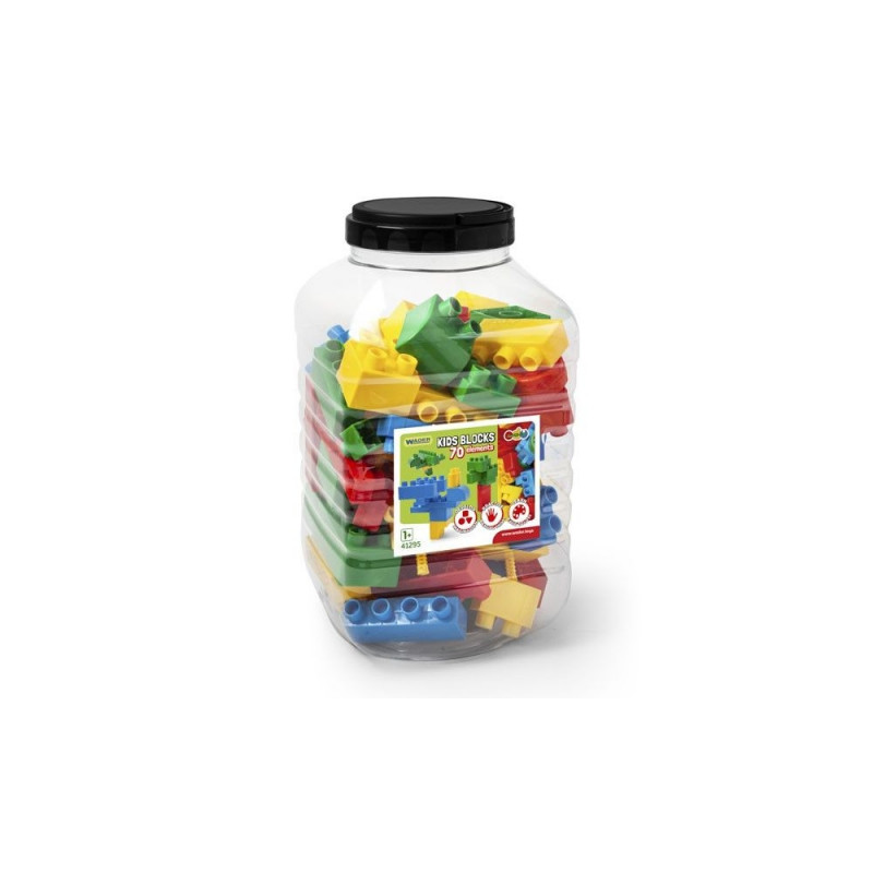 Esitletav komplekt – Kids Blocks klotsid, 70 osa – on mõeldud lastele alates 1. eluaastast. Klotsid on pakitud huvitavasse, mugavasse ja pilkupüüdvasse purgikujulisse pakendisse. Tänu sellisele pakendile on lastetoas korra hoidmine palju lihtsam ning pärast mängu panevad lapsed klotsid meelsamini purki tagasi. Lisaks võib purk olla ka vahvaks dekoratiivseks elemendiks mänguasjade riiulil.