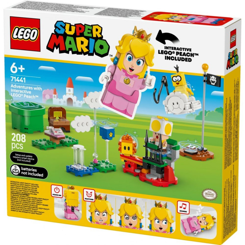 Komplekt sisaldab mitmeid tuttavaid elemente Super Mario maailmast, sealhulgas erinevaid platvorme, takistusi, boonuseid ja vastaseid. Interaktiivne LEGO Peach figuur on varustatud LCD-ekraani ja kõlariga, mis võimaldab tal väljendada emotsioone, reageerida erinevatele mängusündmustele ning suhelda teiste LEGO Super Mario tegelastega, nagu Mario ja Luigi (müügil eraldi). See muudab mängukogemuse veelgi kaasahaaravamaks ja lõbusamaks!