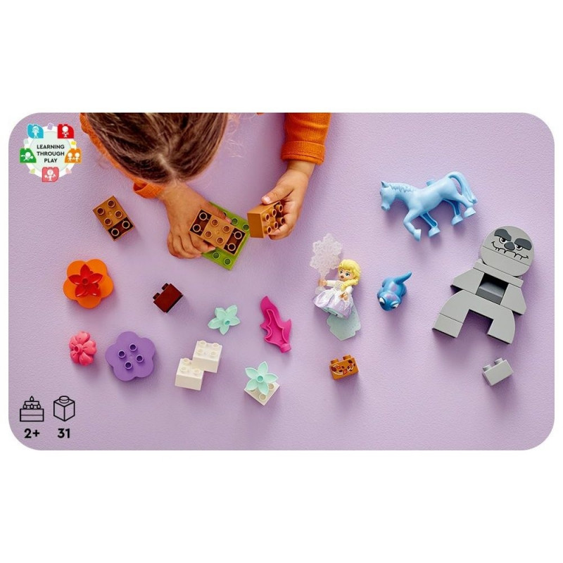 Komplektis on Elsa figuur, armas Bruni salamander ning võlumetsa teemalised ehituselemendid, mis aitavad lastel taasluua filmist tuttavaid stseene või luua täiesti uusi seiklusi. DUPLO klotsid on suuremad ja kergesti käsitletavad, sobides ideaalselt väikestele kätele ning arendades samal ajal peenmotoorikat, loovust ja kujutlusvõimet.