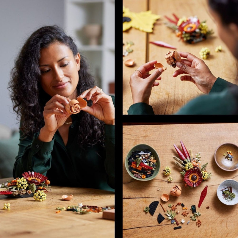 LEGO Creator Expert Kuivlillede Kompositsioon. Tootetüüp: ehituskomplekt, soovitatav vanus (alates): 18 aastat, materjal: plast, osade arv: 812 tükki. Pakendi kaal: 660 g