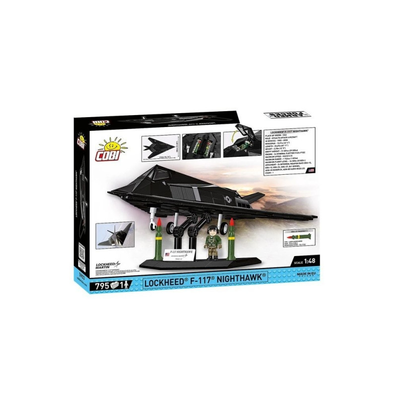 - Piloodi figuur – Komplektis on ka ainulaadne piloodi figuur ajastutruus lennukombinesoonis, millel on detailid nagu kiiver, vest, rihmad ja muud F-117 pilootidele iseloomulikud tarvikud. Figuur on loodud ajaloolise autentsuse tagamiseks ning täiendab komplekti suurepäraselt.