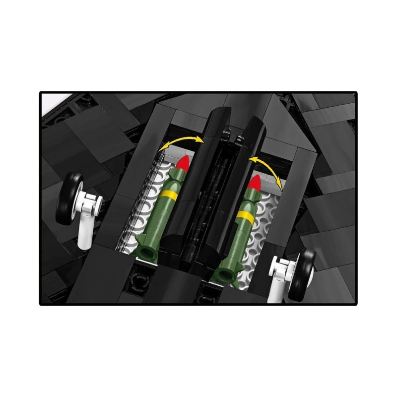 - Liikuvad osad ja relvastus – Mudelil on avatav kabiin, reguleeritavad tiivapinnad, liikuvad rattad kummist rehvidega ning avatav pommiluuk, kuhu saab paigutada komplekti kuuluvad kaks GBU-27 PAVEWAY II tüüpi pommi – tõeline maiuspala igale täpsusmudelite fännile.