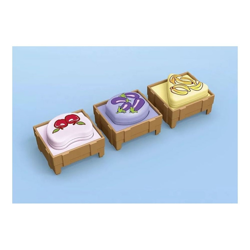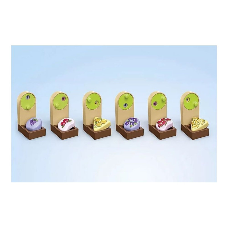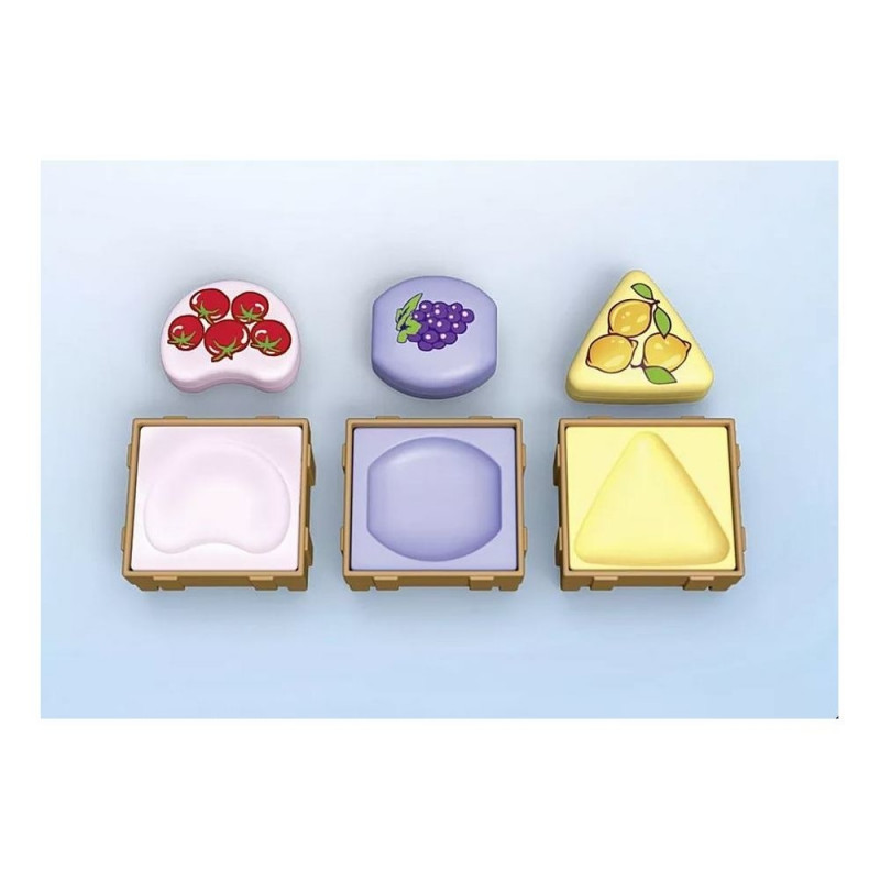 - Värvide ja kujundite õppimine: kastidel on värvilised sisud, kuhu saab sobitada vastavaid puu- või köögivilju.