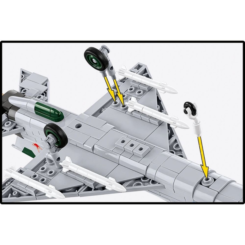 - 381 detaili – komplekt koosneb täpselt valmistatud klotsidest, mis kujutavad lennuki olulisi osi: iseloomulik kerekuju, õhuvõtuava, relvastus ja teliku detailid.