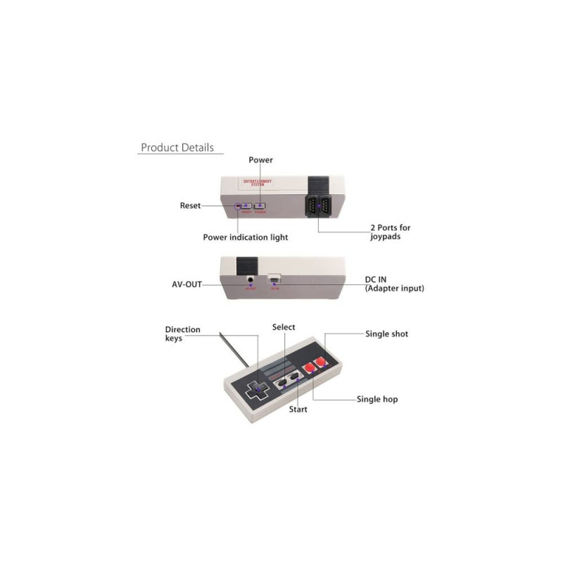 Goodbuy mängukonsool 2 juhtkangi ja 256 8-bitise halli mänguga