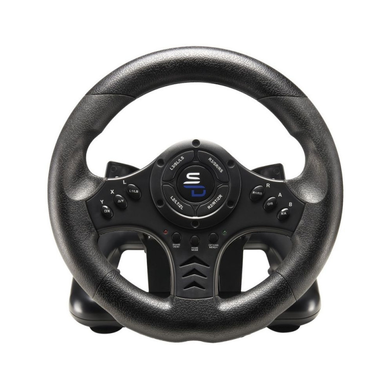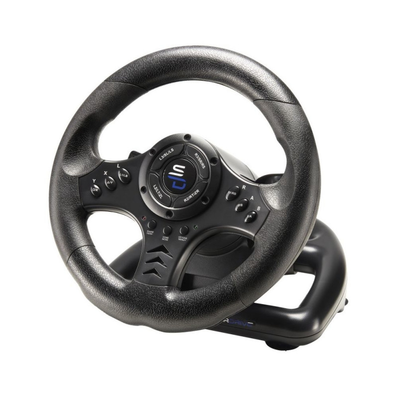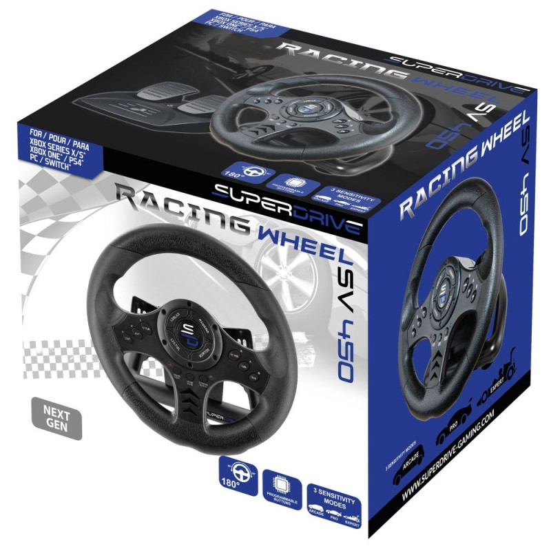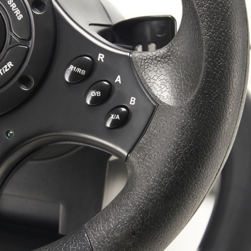 Võidusõiduratas, mis on loodud võidusõidu simuleerimiseks ja tõeliste võidusõiduelamuste pakkumiseks.Funktsioonid • Pöörlemisnurk: 180 kraadi • Ratta läbimõõt: 23 cm • Roolilabad ja pedaalid • 3 tundlikkuse taset • Kummist käepideTehnilised andmed Pöörlemisnurk: 180 kraadi Ratta läbimõõt: 23 cm Haardeviimistlus: jah Käiguvahetuslabad: jah Käigukang: ei Kaasas pedaalid: Jah Pedaalide arv: 2 : gaasipedaal + pidur Pedaalide tüüp: Väike Vibratsioon: - Kõrvaklappide ühilduvus: - Manus: - Kabiini ühilduvus: - OS-i ühilduvus: PS4, PS3, XBOX ONE, XBOX seeria X/S, arvuti, SWITCH