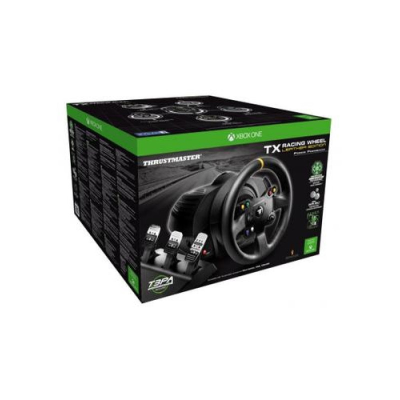 NEXT-GEN force feedback racing simulatorfor Xbox One™ and PC Complete pack featuring: - Detachable leather wheel TM Leather 28 GT - TX Racing Wheel Servo Base - 3-pedals pedal set T3PA Add-OnThrustmaster 4460133. Device type: Steering wheel + Pedals, Gaming platforms supported: PC, Xbox One. Product colour: Black. Width: 460 mm, Depth: 355 mm, Height: 3.25 mm. Package width: 355 mm, Package depth: 460 mm, Package height: 325 mm. Bundled software: Xbox One