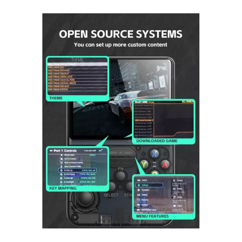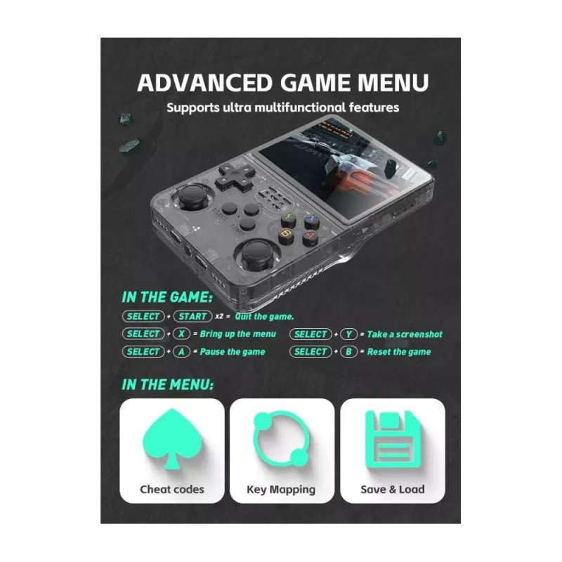 The R36S is a budget-friendly retro console designed to emulate a variety of classic gaming systems. It features a 3.5-inch IPS display, high-performance emulation, and runs on the customizable ArkOS operating system.