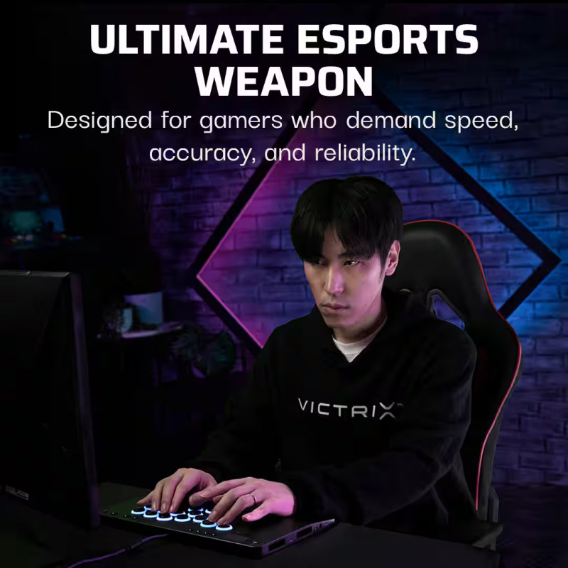 Victrix Pro KO ainulaadse 16-nupulise paigutuse on optimeerinud legendaarne võitlusmängude meister Momochi, tagades parima võimaliku mängukogemuse.