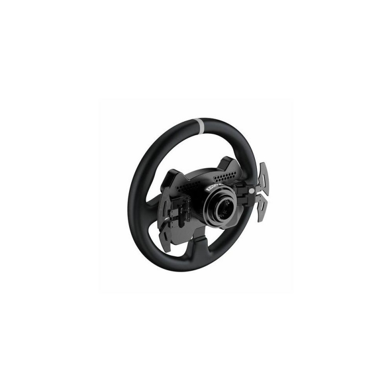 <b>13 Inch Standard Racing Rim<br></b>With a true-to-life size matching real racing car, the CS offers a realistic sim racing experience.<br><br><b>Aviation Grade Aluminum Alloy Frame<br></b>Using aviation grade aluminuim alloy for the rim, operation board and base plate, the wheel sports exceptional quality and rigidity.<br><br><b>Customized Quick Release<br></b>MOZA's customized quick release system derived from real racing systems allows racers to quickly switch wheels in seconds while ensures stable connection.<br><br><b>Forged Carbon Fiber Magnetic Shifter<br></b>The magnetic shifters have a firm feeling with a forged carbon fiber design. The contactless photoelectric technology makes the paddles extremely stable and ensures you never miss a shift.<br><br><b>RGB Sequential Shifter Light Indicator<br></b>The CS features 10 RGB LED sequential shift lights with 7 adjustable colors, allowing racers customize the rev speed lighting.<br><br><b>Programmable Mechanical Key Buttons<br></b>6 programmable key buttons with tactile feedback.<br><br><b>2 Pressable Universal Joysticks<br></b>With two joysticks available that could simulate 10 keys and 2 sets of cross keys, the CS wheel can handle complex operations in racing games.<br><br><b>MOZA Invisible Connect Wireless Technology<br></b>MOZA's 2.4G wireless signal technology allows for easy hassle-free racing, which has proven to provide longer service life and greater stability than wired transmission through thousands of hours of testing.Moza Racing CS V2P Dual Clutch Steering Wheel. Device type: Steering wheel, Gaming platforms supported: PC. Connectivity technology: Wired, Device interface: USB. Product colour: Black, Steering wheel material: Aluminium, Magnetic shifter material: Forged carbon fibre. Power source: Cable