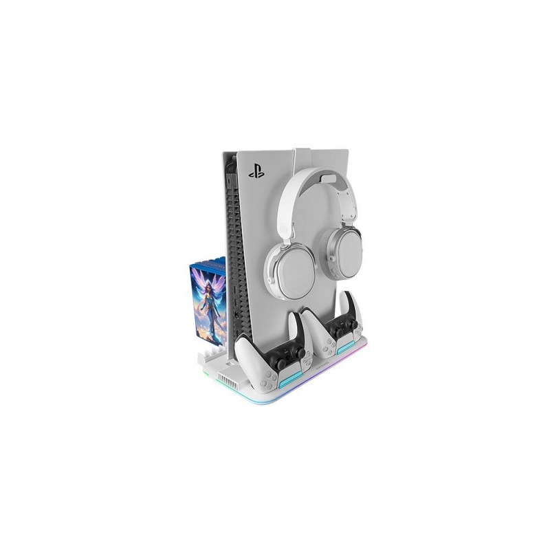 The MPS5-B2 stand for PS5 is the perfect all-in-one gaming accessory. It combines efficient cooling, neon RGB lighting, controller charging, an additional USB port, a headphone stand, and game storage in one place. Compatible with PS5 Slim, Standard, and Digital Edition consoles, this stand is designed to optimize your gaming setup. Take your gaming experience to the next level with the MPS5-B2 multifunction stand!