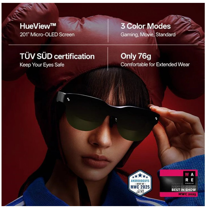 RayNeo Air 3S kasutab revolutsioonilist HueView micro-OLED ekraani, mis katab kuni 98% DCI-P3 värviruumist, pakkudes erakordselt laia ja realistlikku värvivalikut. Värvitäpsusega ΔE < 2 on iga toon täpselt edasi antud. 200 000:1 kontrastsussuhe võimaldab näha ka kõige peenemaid detaile nii sügavates mustades kui ka eredates alades, ning 201-tolline virtuaalekraan tagab täieliku sukeldumise mängude, filmide ja sarjade maailma – just nagu päris kinolinal.