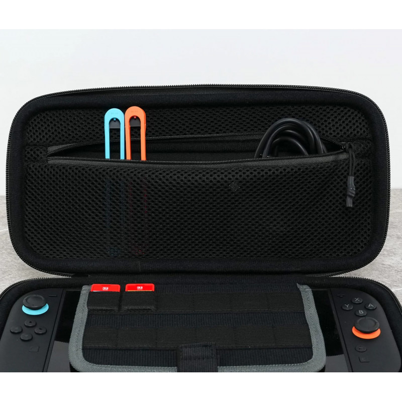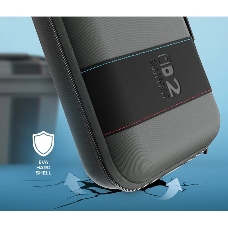 Vastupidav EVA kest ning TPU kattega pind tagavad efektiivse kaitse, samas kui koti sang ja reguleeritav õlarihm teevad varustuse kaasas kandmise mugavaks. Kott on ametliku Nintendo litsentsiga – ideaalne reisimiseks, turniirideks või igapäevaseks hoiustamiseks.