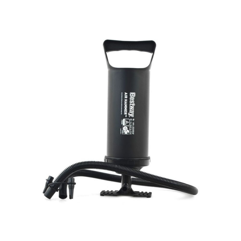 BESTWAY AIR HAMMER PUMP 14'' 36cm /7802 Properties: Pump with a large air chamber for fast inflation. Capacity 2 x 910 cm3 The pump is flow-through, i.e. it pumps during up and down movement, and has a flexible hose. Fits most valves. It has been deOsta kohe, viimased eksemplarid laos!