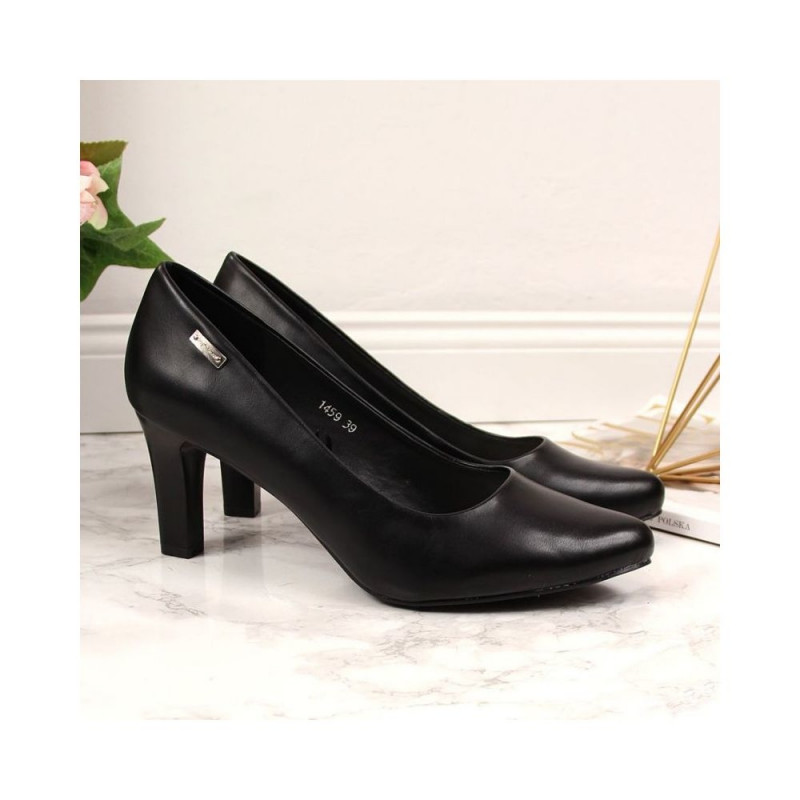 Black pumps with a block heel W Sergio Leone Properties: Sergio Leone heels made for women heel height: 7.5 cm slip-on upper made of synthetic patent leather lining made of synthetic leather insole made of natural leather Material:Osta kohe, viimased eksemplarid laos!