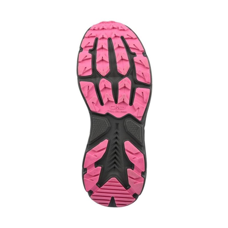 Buty damskie CMP charakteryzują się wszechstronnym zastosowaniem. Model sprawdzi się podczas spacerów, wędrówek czy biegania po trudniejszym szlaku. Cholewka w przeważającej części została wykonana z materiału tekstylnego o siateczkowej strukturze. Wzmocnienia z TPU ulokowane w obrębie palców, języka, sznurowania i pięty zwiększają trwałość. Klasyczne sznurowanie. Tekstylne wnętrze. Wkładka HIP Inhole oparta tzw. otwartokomórkowej strukturze przyczynia się do wewnętrznej wentylacji na całej powierzchni stopy. Poza tym posiada właściwości antybakteryjne. Lekka i sprężysta podeszwa środkowa z pianki EVA amortyzuje każdy krok, nie obciążając stawów. Gumowa podeszwa zewnętrzna zaopatrzona w technologię CMP Full On Grip zapewnia wysoką przyczepność i stabilność zarówno w mokrych, jak i suchych warunkach.